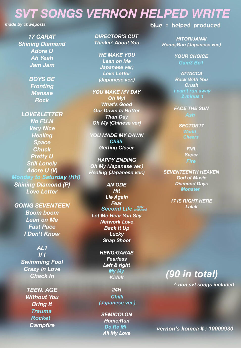 As of April 2024, he has 90 songs copywrited under his name, the 2nd most in Seventeen, KOMCA made him a full member Feb 1 2024his KOMCA id is 10009930